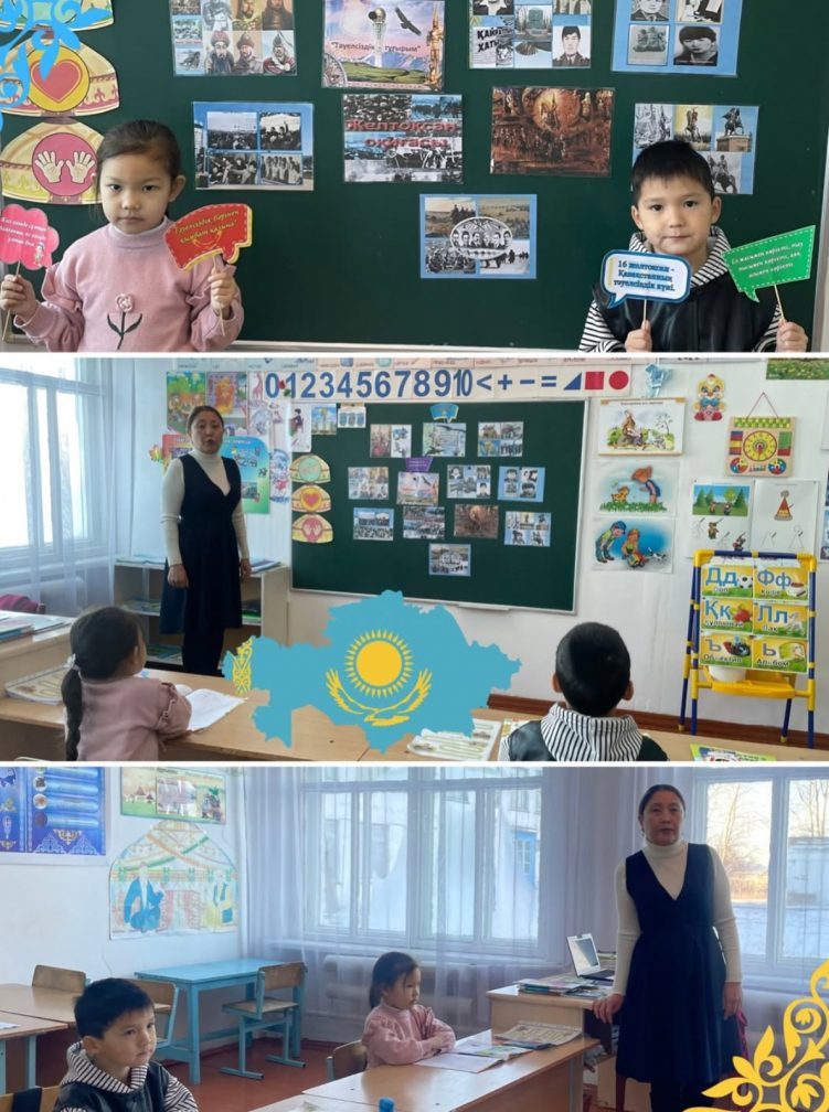 Тәуелсіздік күніне орай мектепалды даярлық сыныбында танымдық сабақ өткізілді. Сабақтың мақсаты – Бүлдіршіндердің бойына Отанға деген сүйіспеншілікті қалыптастыру, туған елінің рәміздері мен тарихы жайлы алғашқы түсінік беру.